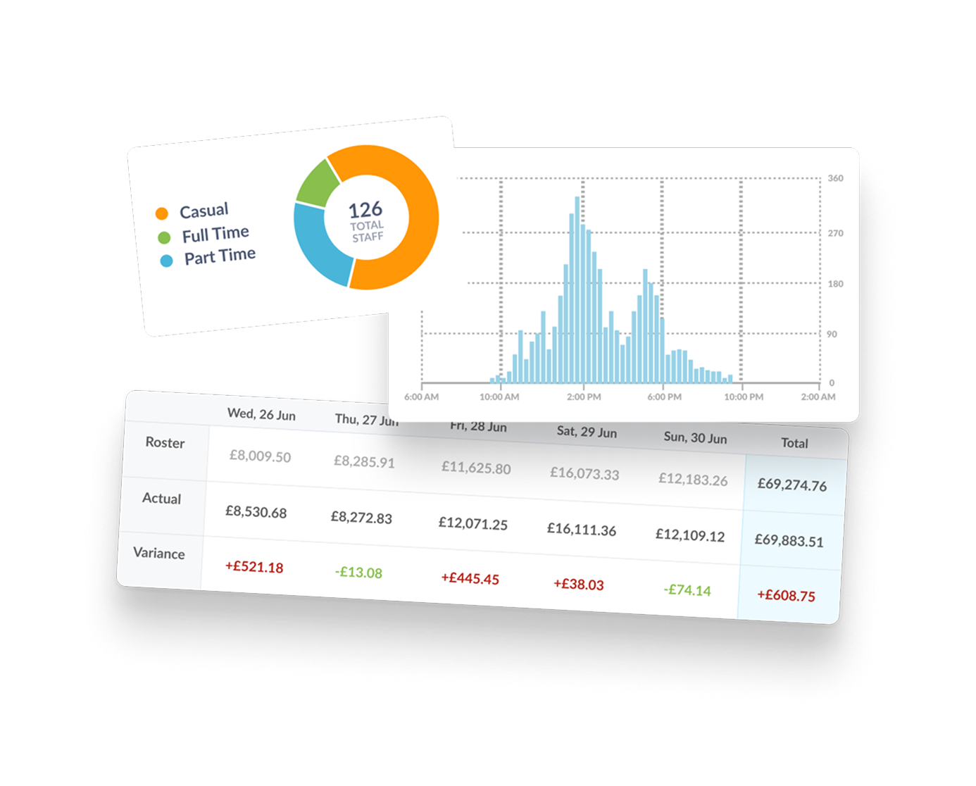 Una domanda imprevedibile e scarsa visibilità portano a organici squilibrati. Per questo Workforce.com semplifica la previsione del fabbisogno utilizzando vendite storiche, flussi di passaggio e dati meteo per pianificare le persone giuste, nei ruoli giusti, al momento giusto, in ogni sede.
