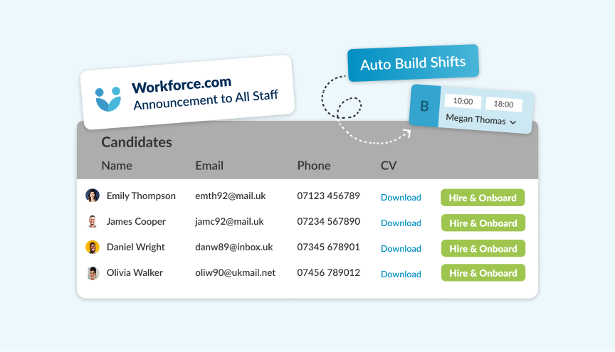Un modo più intelligente per mantenere l’organico al completo: usa Risorse umane e pianificazione insieme per trovare e assumere nuovi addetti, inserirli rapidamente e coprire i turni scoperti. Il risultato: più candidati, posizioni coperte più in fretta e meno scoperture.