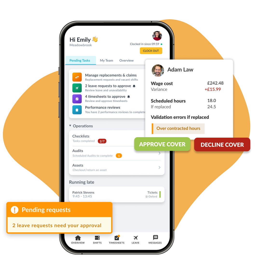- Gestisci il team dall’app mobile di Workforce.com: comunica con i dipendenti, invia aggiornamenti, approva ferie e gestisci scambi di turno ovunque e in qualsiasi momento.