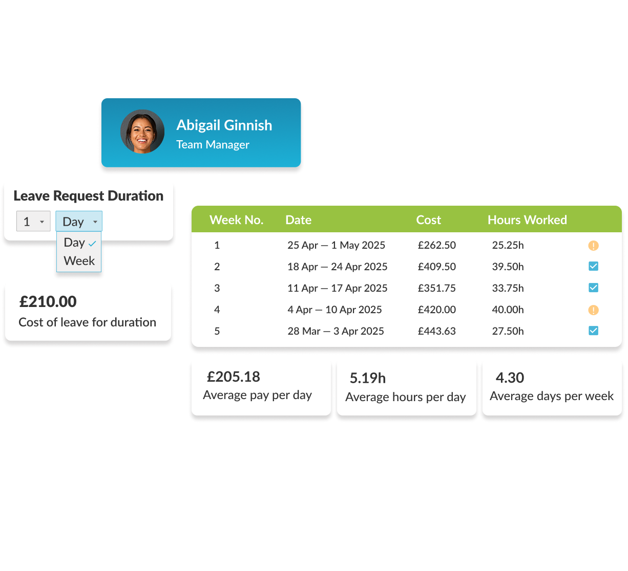 Le aziende possono impiegare più di un’ora per calcolare la media di 52 settimane di ore e costi per una singola richiesta di ferie. Con Workforce.com, tutti i calcoli sono automatizzati utilizzando i dati già presenti in Workforce, eliminando la necessità di lavoro manuale.