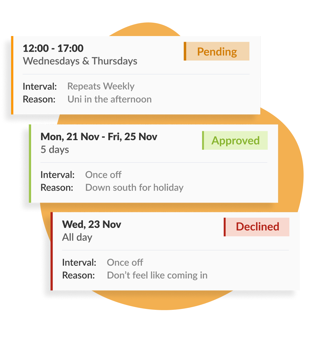 Gestisci cambi turno, approva le ferie, chiama rinforzi e resta aggiornato con notifiche automatiche — tutto dal tuo smartphone.