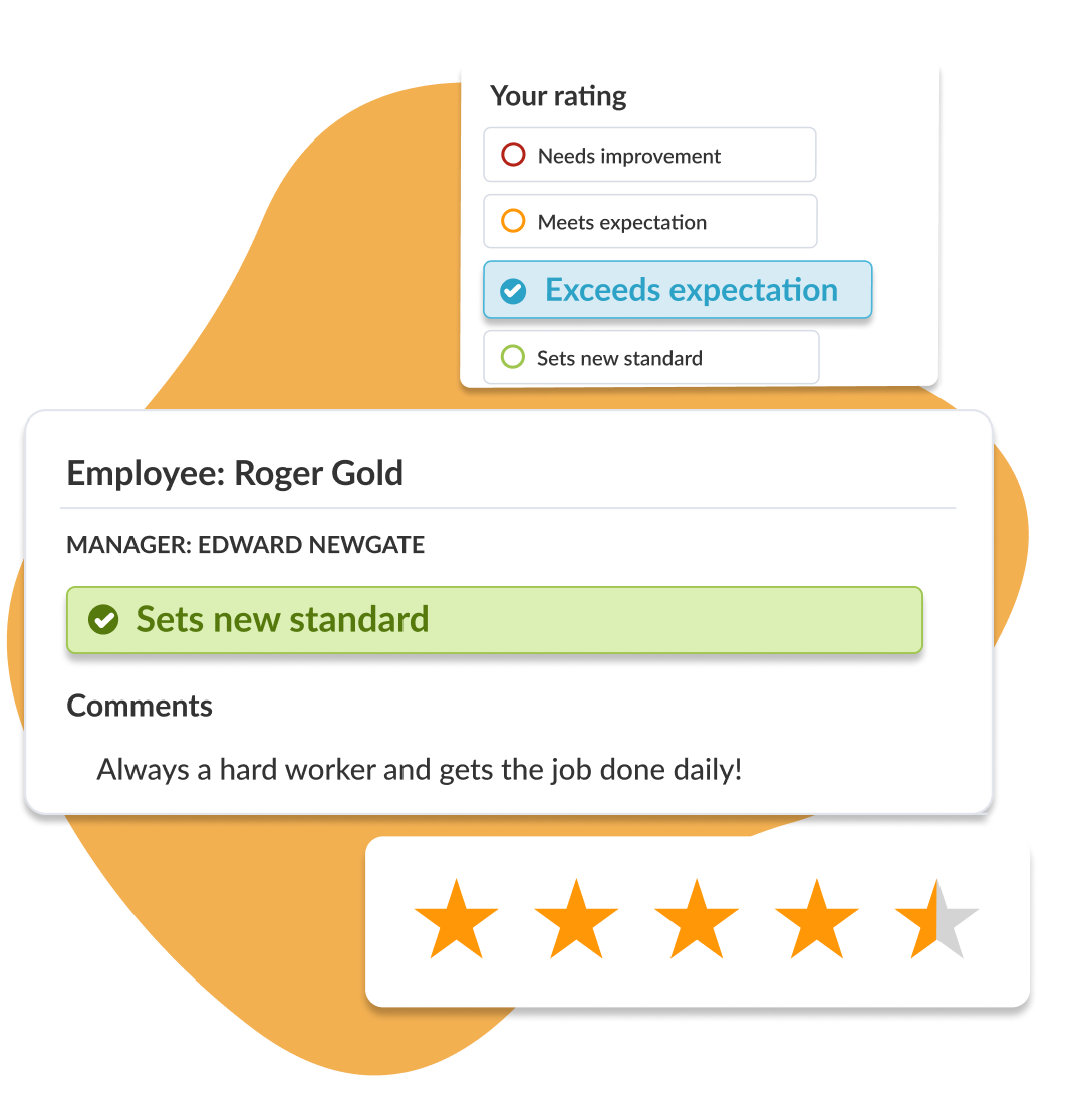 - Svolgi facilmente valutazioni 360 e 1:1 con modelli pronti e mantienile coerenti con promemoria ai manager. Potrai individuare andamenti più ampi delle performance tra team e sedi su cui intervenire.