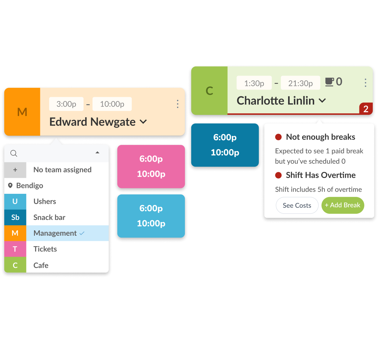 Pianifica i turni settimanali e assegna le persone giuste per ridurre i costi del lavoro, le assenze e il tempo amministrativo.