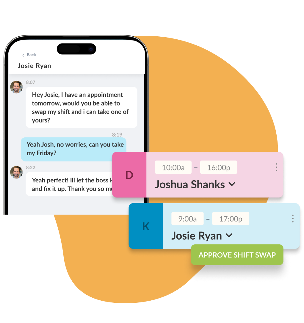 Posti vacanti all’ultimo minuto e mancate presentazioni possono lasciarti sotto organico. Con Workforce.com pubblichi i turni aperti, consenti allo staff di richiedere sostituzioni e ricevi segnalazioni automatiche dei conflitti, così c’è sempre la persona giusta.