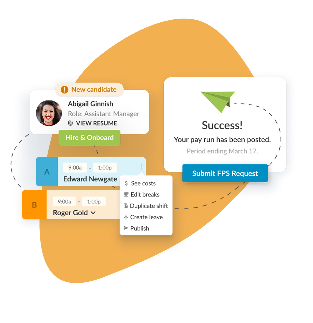 Elimina i sistemi multipli e gestisci le risorse umane, pianifica i turni e paghe da un’unica piattaforma.
